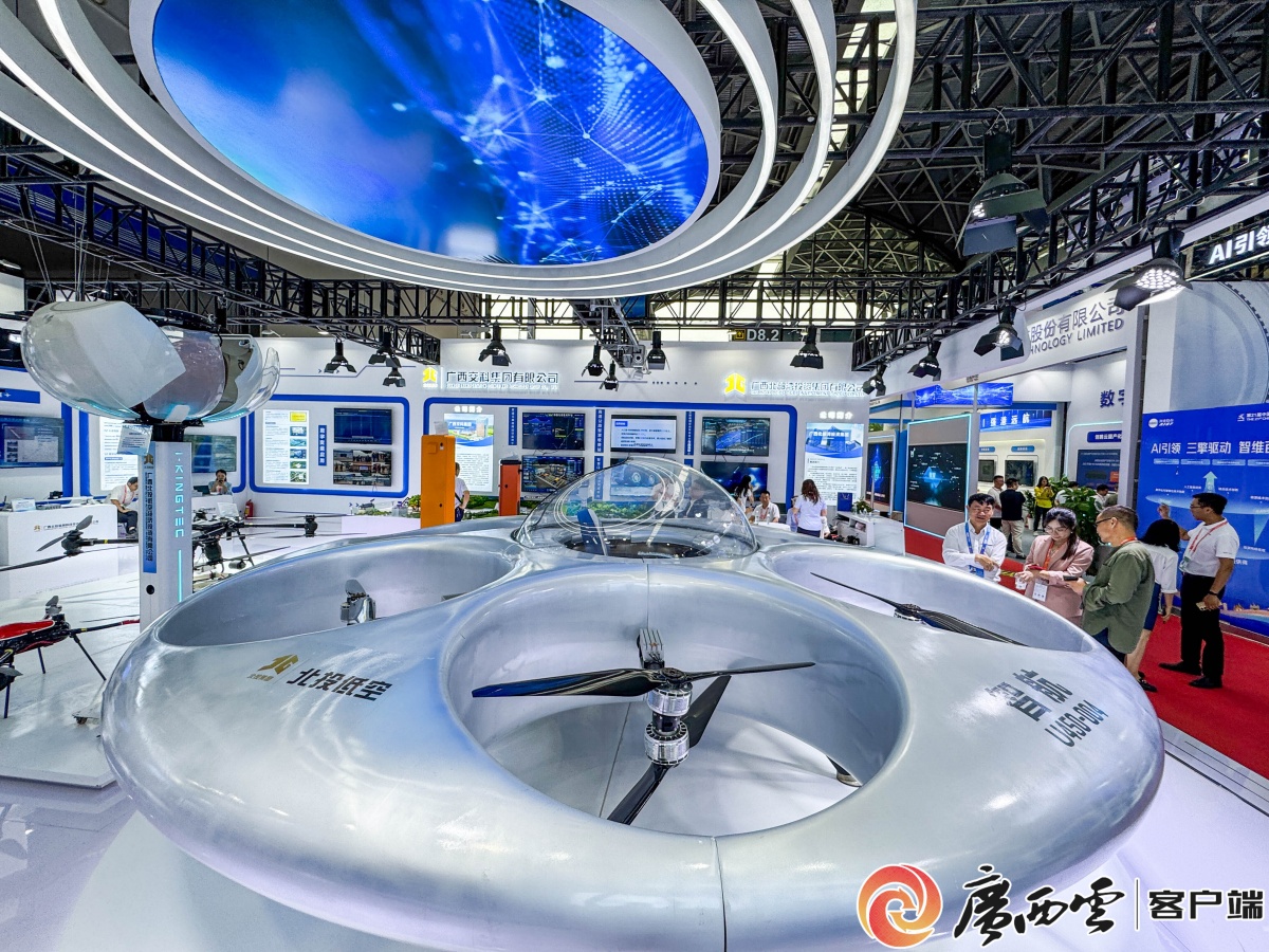 第21届东博会,图为一架“飞碟”降落在D8展厅。记者 邹财麟 游拥军 摄(资料图)