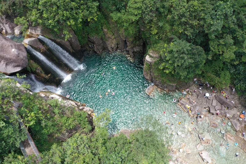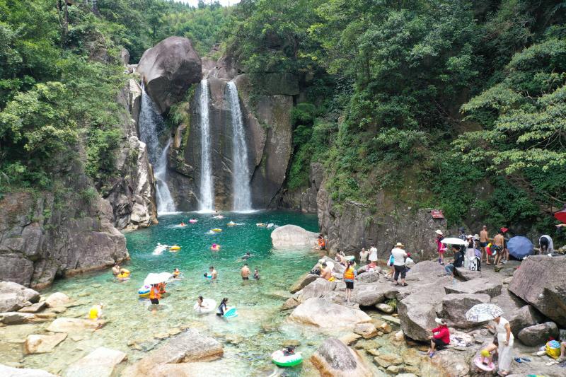 据了解,嵘溪瀑布景区基础设施不断完善,周边配套了餐饮、休息区,还有售卖游泳装备的摊位,为游客提供便利。随着知名度的提升,不仅有本地游客,还有许多周边城市的游客慕名而来,戏水、游泳、拍照留念,享受惬意的假期时光。据景区工作人员介绍,暑期以来,每日游客接待量比平日大幅增长,周末更是游客爆满。