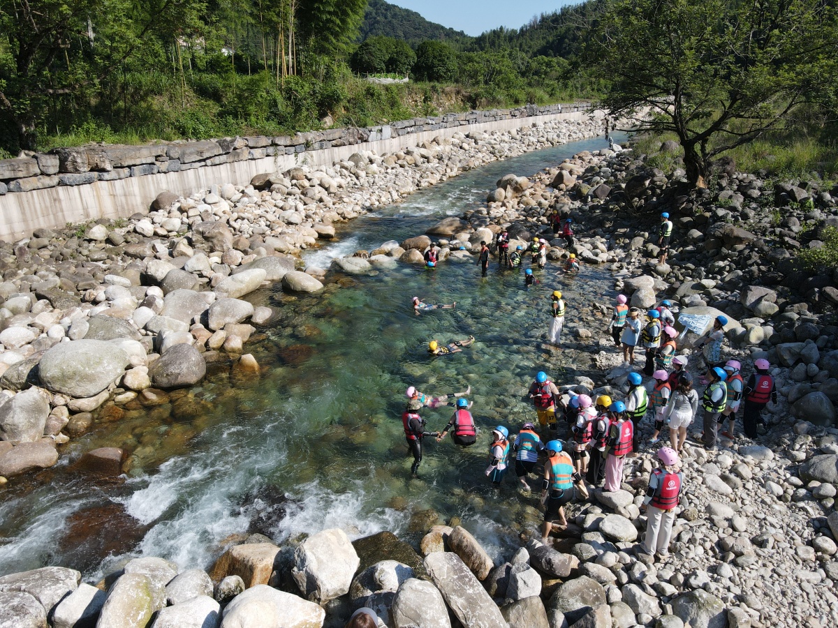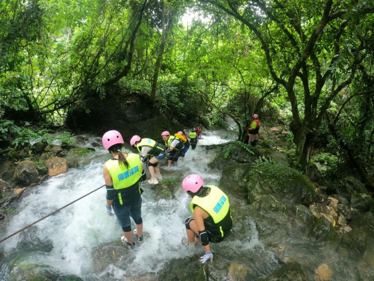 作为广西首个溪降项目,丹炉山仙塘溪降融合了水上攀岩、人体漂流、跳水运动、水上越野等多种玩水体验。景区配备了专业的教练团队,全程跟随保护,即使不会游泳的游客也能够安心体验。