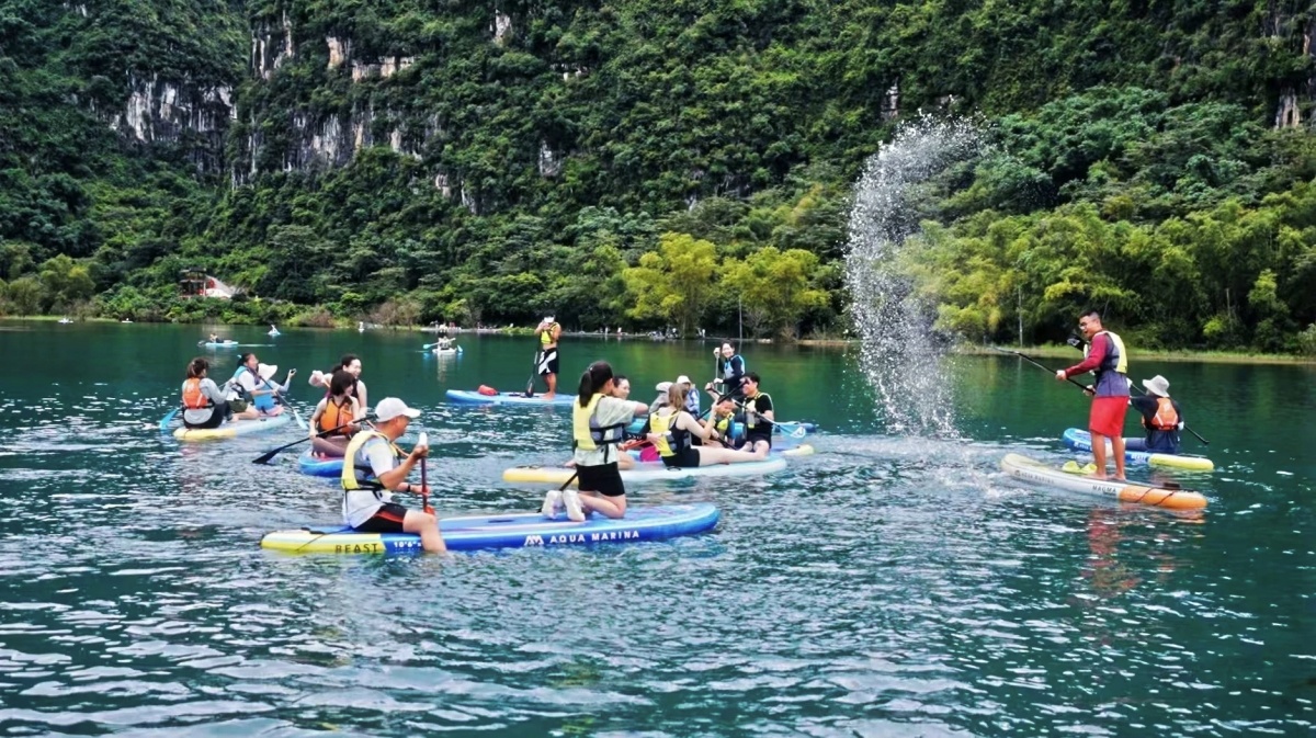 游客在龙州天琴壮寨体验桨板。龙州县文旅体广局供图