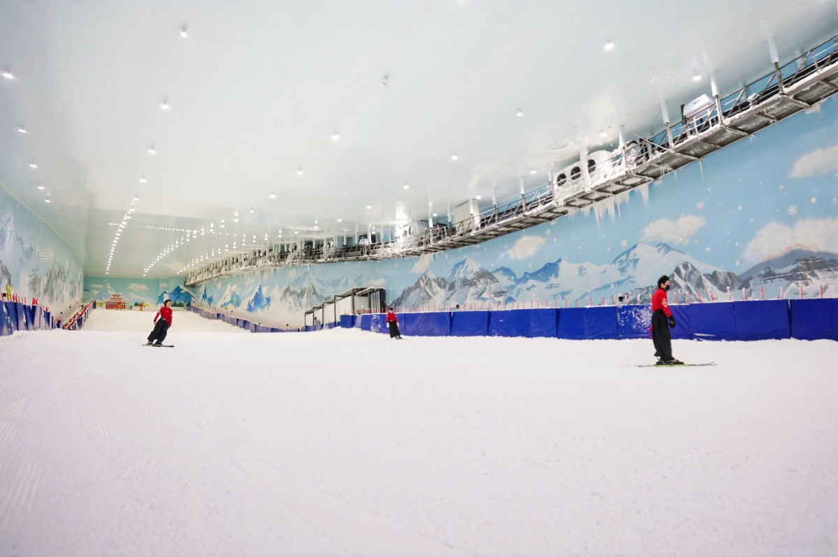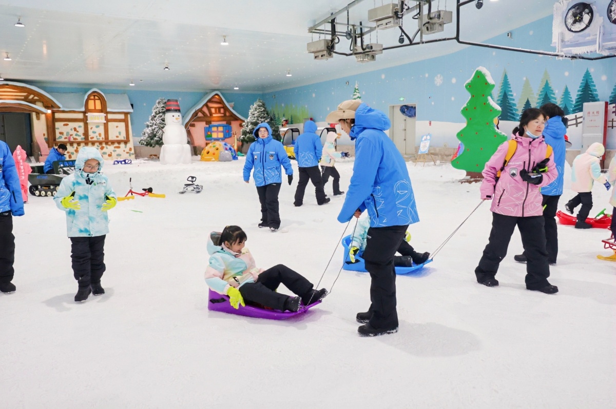 工作人员介绍,馆内设有7300平方米的专业滑雪区和5700平方米的儿童戏雪区,能同时容纳1000多名游客开展冰雪娱乐活动;配备多条专业滑雪道,可满足滑雪爱好者的多层次需求。
