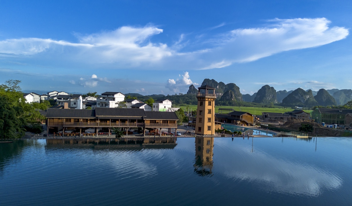 “在这里,既可以体验桨板的新玩法,还可以欣赏峰林倒影,其乐无穷。”上个周末,南宁游客林先生一家在龙州天琴壮寨度过了一个难忘的假期。