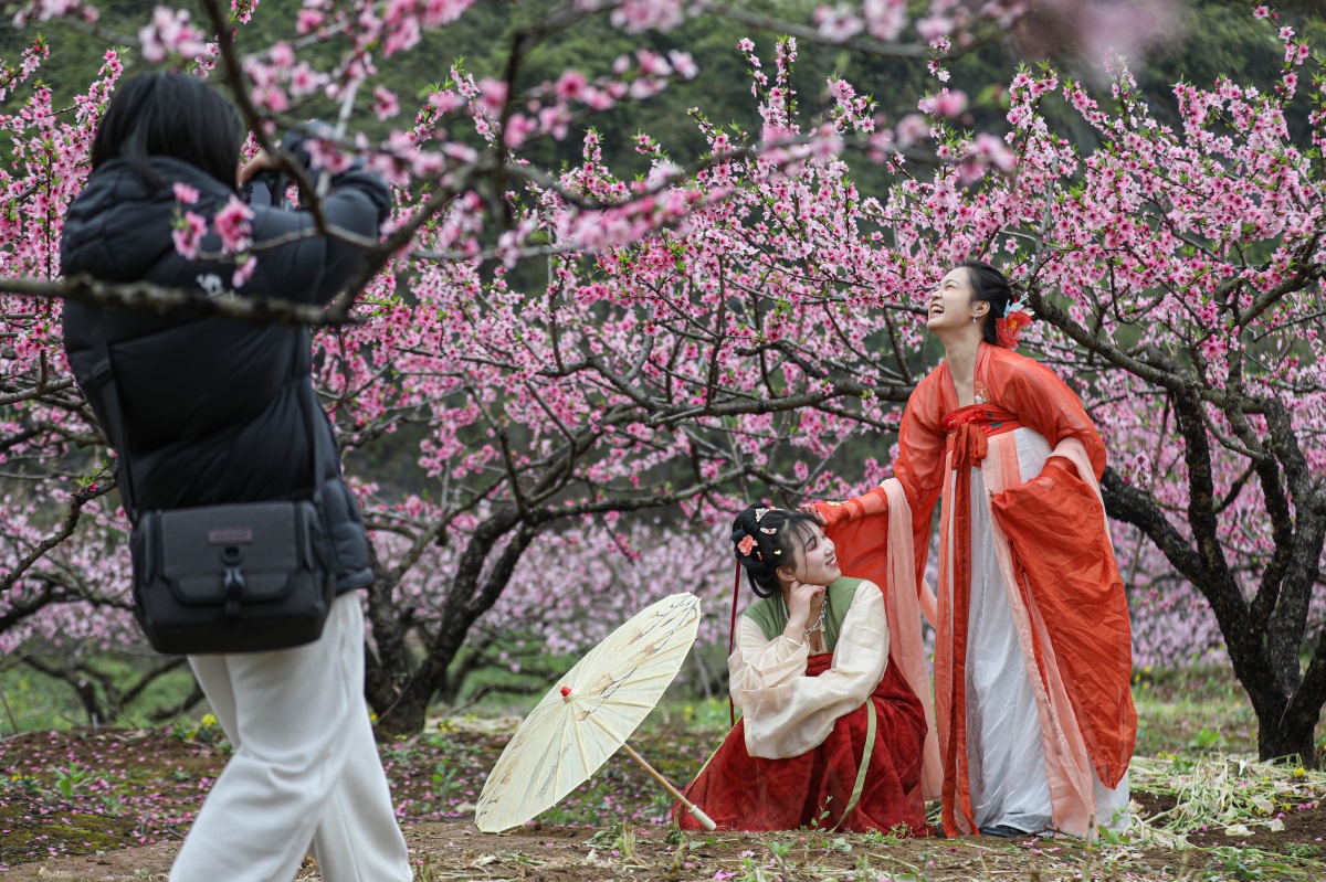 广西桂林市灵川县海洋乡,汉服爱好者在桃林里拍摄、游玩。通讯员 阳海翔 摄 花香引客至,产业兴乡村。近年来,海洋乡充分发挥生态资源优势,紧扣“春赏桃李花开”季节主题,依托万亩桃李花海,以花为媒、以节兴旅、以产兴村,全力推动“赏花+乡村游”融合发展。 “我们重点打造了尧乐村、水头村核心赏花区,推出精品赏花线路,设置特色打卡点,举办桃花节等节庆活动聚人气、树品牌。”灵川县文化广电体育和旅游局负责人介绍,美丽花景还与田园村落、山林有机串联,打造沉浸式乡村景观,推出乡村休闲、特色美食等业态,有效提升吸引力与影响力,带动村民增收与乡村振兴。 数据见证活力:今年赏花季以来,海洋乡旅游热度持续攀升,其中桃花观赏区日均客流量达500人次,周末超1000人次。旺盛人气带旺“摆摊经济”,带动乡村土特产、手工艺品热销,村民日均增收300—800元,周边农家乐、乡村民宿等业态收入增长明显,“赏花经济”正成为助力乡村振兴的特色富民产业。 立足特色资源优势,海洋乡将通过提档核心景观、丰富业态融合、完善服务配套、强化品牌引流等举措,持续做强赏花旅游吸引力,做长“赏花经济”链条,将花海流量转化为消费增量、富民存量,推动乡村振兴提质增效。 百色市田东县江城镇 荞麦地成打卡地 在百色市田东县,一片片田园花海将春日渲染得格外烂漫。眼下,该县江城镇供固村350余亩荞麦花正在盛放,洁白的花海绵延铺展,与远处的喀斯特峰丛、古榕江交相辉映。 百色市田东县江城镇供固村,成片荞麦花盛开。田东县文化体育广电和旅游局供图 田埂上,游客们三五成群,或赏花拍照,或漫步闲谈。“这里风景很美,空气清新,随手一拍便是‘不用滤镜的田园诗’,是个周末休闲放松的好地方。”游客李女士说。 供固村种植荞麦,已有近百历史。每年稻子收完,农户们把冬闲田翻耕一遍,撒下荞麦种,2个月左右,白花开满田,既养了地,又添了一份收入。