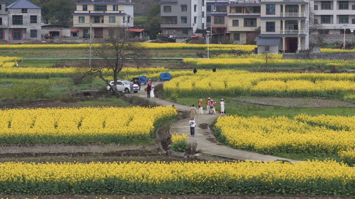 游客在贺州市富川瑶族自治县的油菜花田里赏花。富川瑶族自治县文体广电和旅游局供图 放眼广西,油菜花并不鲜见。富川的油菜花,如何从农业庄稼,变成吸引游客的风景?答案,藏在科学的种植规划里。 富川瑶族自治县文体广电和旅游局局长林忠介绍,近两年,富川盘活冬闲田,在全县12个乡镇系统规划油菜种植3.6万亩,精心打造东西南北4条各具特色的观赏线路,将村落、景点与生态资源串珠成链,达到主干道沿线皆景、重点区域连片可赏的效果,不断扩大“春天到富川看油花”的品牌影响力。 光有花海还不够,富川更着力丰富“赏花+”产品,培育民宿、餐饮、文创等业态。游客来后,不仅能赏花,还能品尝瑶乡特色风味,参与到古道探秘、汉服旅拍、非遗学习、农耕实践、研学体验等互动当中。 富川赏花季接力春节假期,持续引爆客流。今年一季度,富川预计接待游客219.88万人次,同比增长14.62%;旅游总消费23.01亿元,同比增长14.94%。除周边客源外,省外游客多了,旅游团、亲子团、研学团来了,停留时间从一两小时,拉长到半天、一天,过夜游客占比明显增加。 “赏花季以来,我家店日均收入4000元左右,最高一天超1.3万元。”朝东镇岔山村花姐油茶店的卢雪花一边忙活一边说,语气里藏着喜悦。 这份喜悦,不仅属于经营户,也惠及种植户。4月中下旬,鲜花谢后,油菜籽收割、榨油创收;秸秆还田、肥土,为来年水稻增产蓄力,真正实现了生态效益与经济效益的双赢。 自治区文化和旅游厅有关负责人表示,下一步,广西将立足各地花卉资源特色,统筹优化赏花旅游线路布局,积极发展“赏花+农事”“赏花+民俗”“赏花+美食”“赏花+康养”等融合业态,不断完善乡村旅游配套服务,持续延伸文旅消费链条,推动赏花经济从单一花期观光向全季、全域、全产业链发展。
